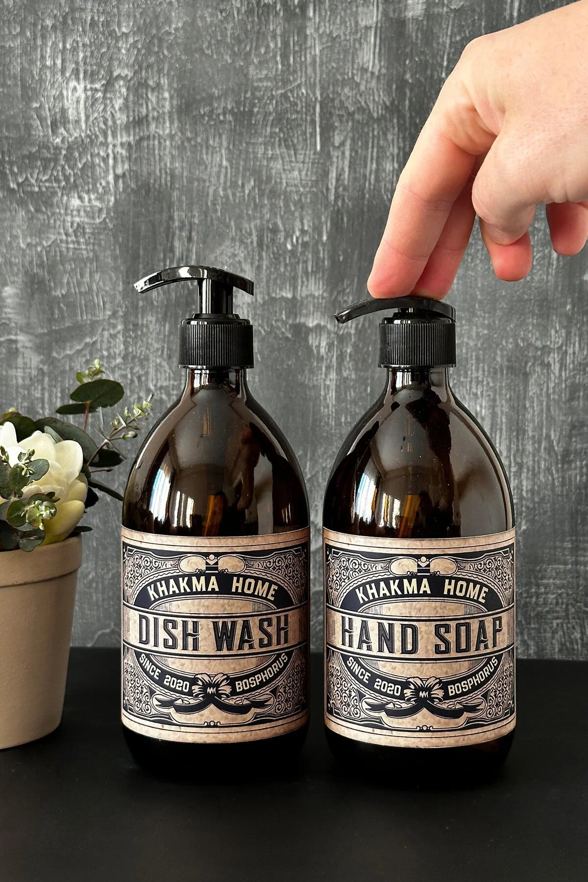 500 ml Amber 2'li Vintage Cam Sabunluk Seti