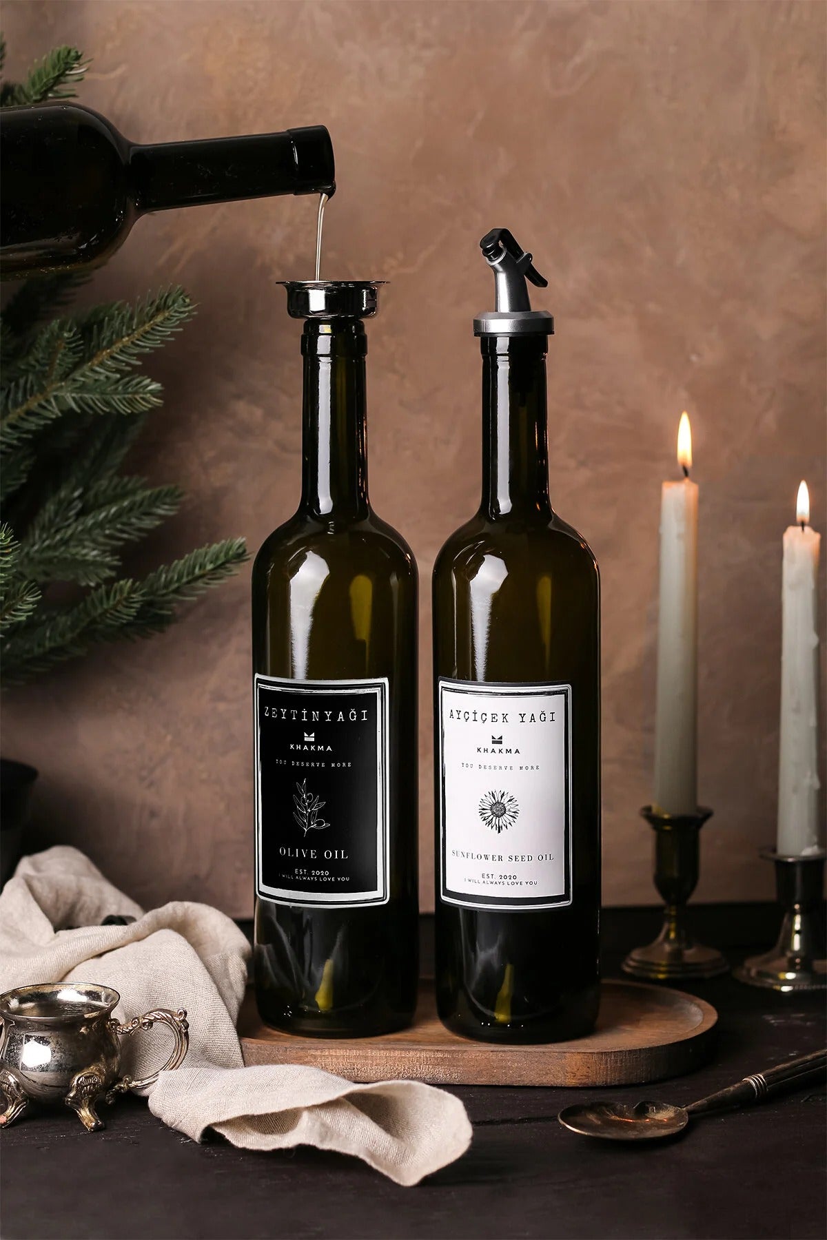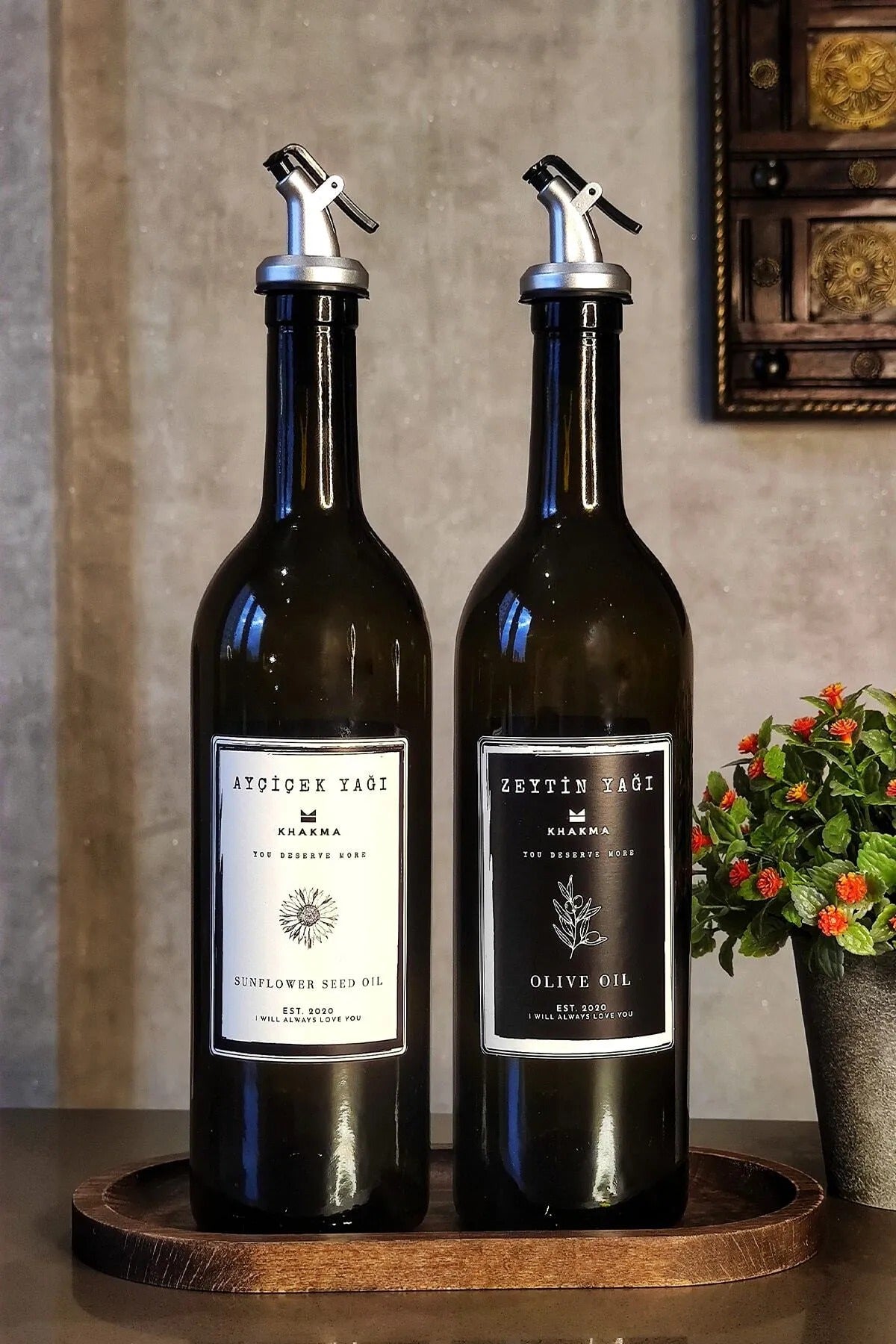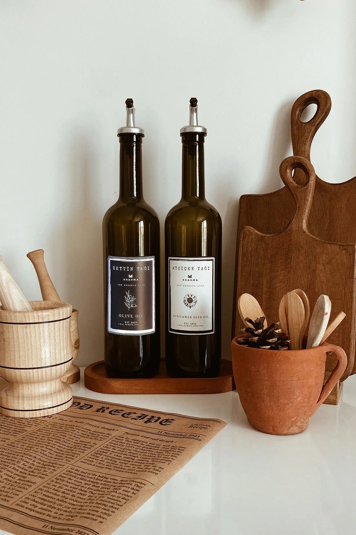 Ahşap Stantlı Amber 2'li 750 ml Zeytinyağı Sıvıyağ Şişesi Yağdanlık 750 Sb Stantlı