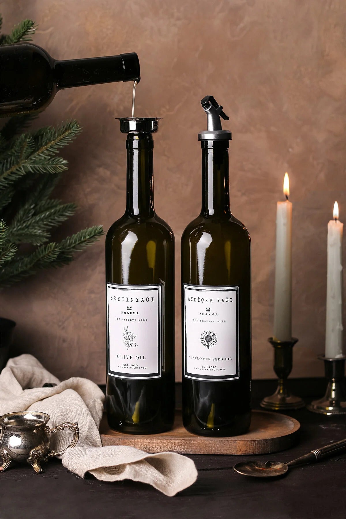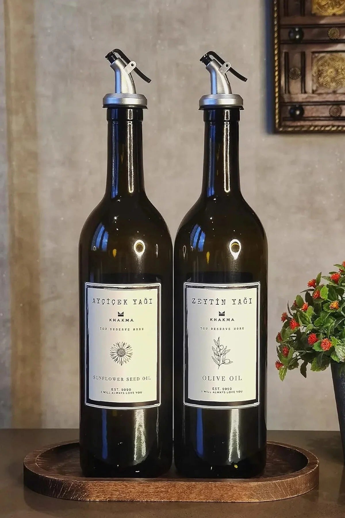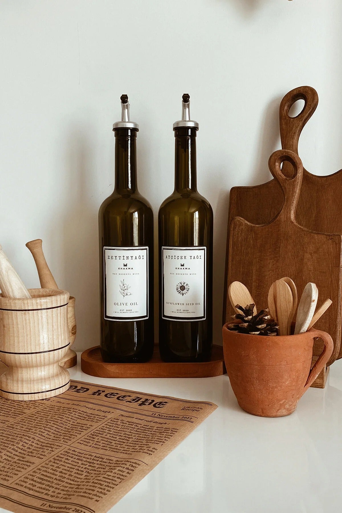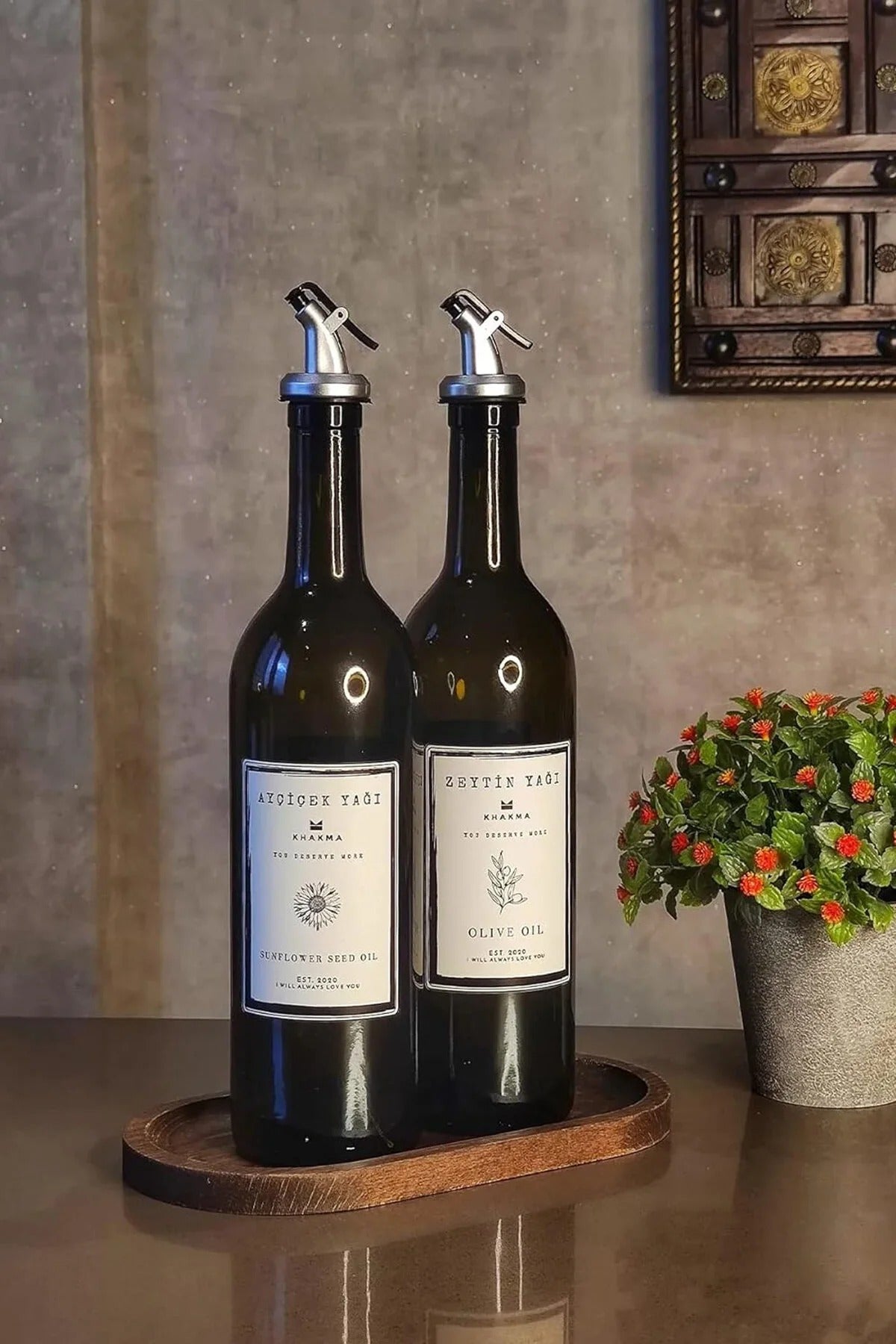 Ahşap Stantlı Amber 2'li 750 ml Zeytinyağı Sıvıyağ Şişesi Yağdanlık Yağlık 750 Bb Za St