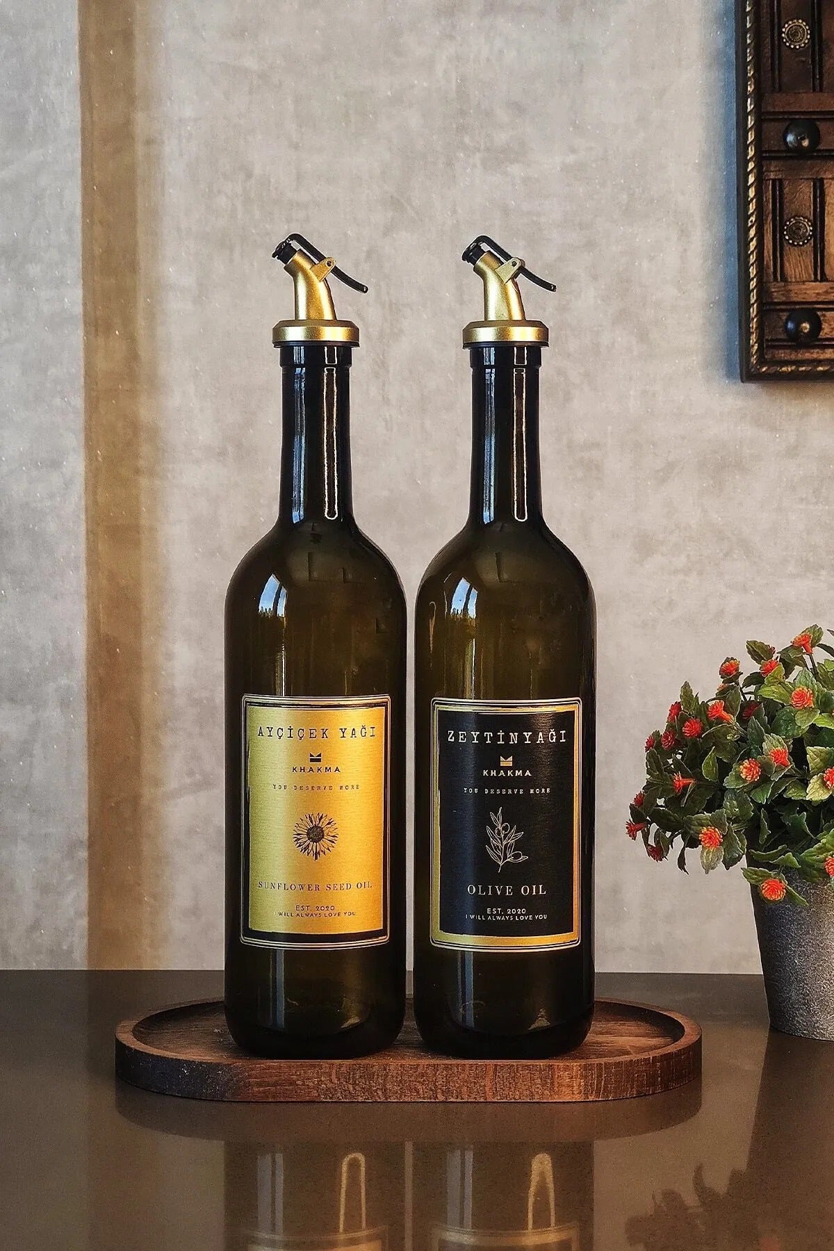 Ahşap Stantlı Amber Gold 2'li 750 Ml Zeytinyağı Sıvıyağ Şişesi Yağdanlık Yağlık 750stantlırg
