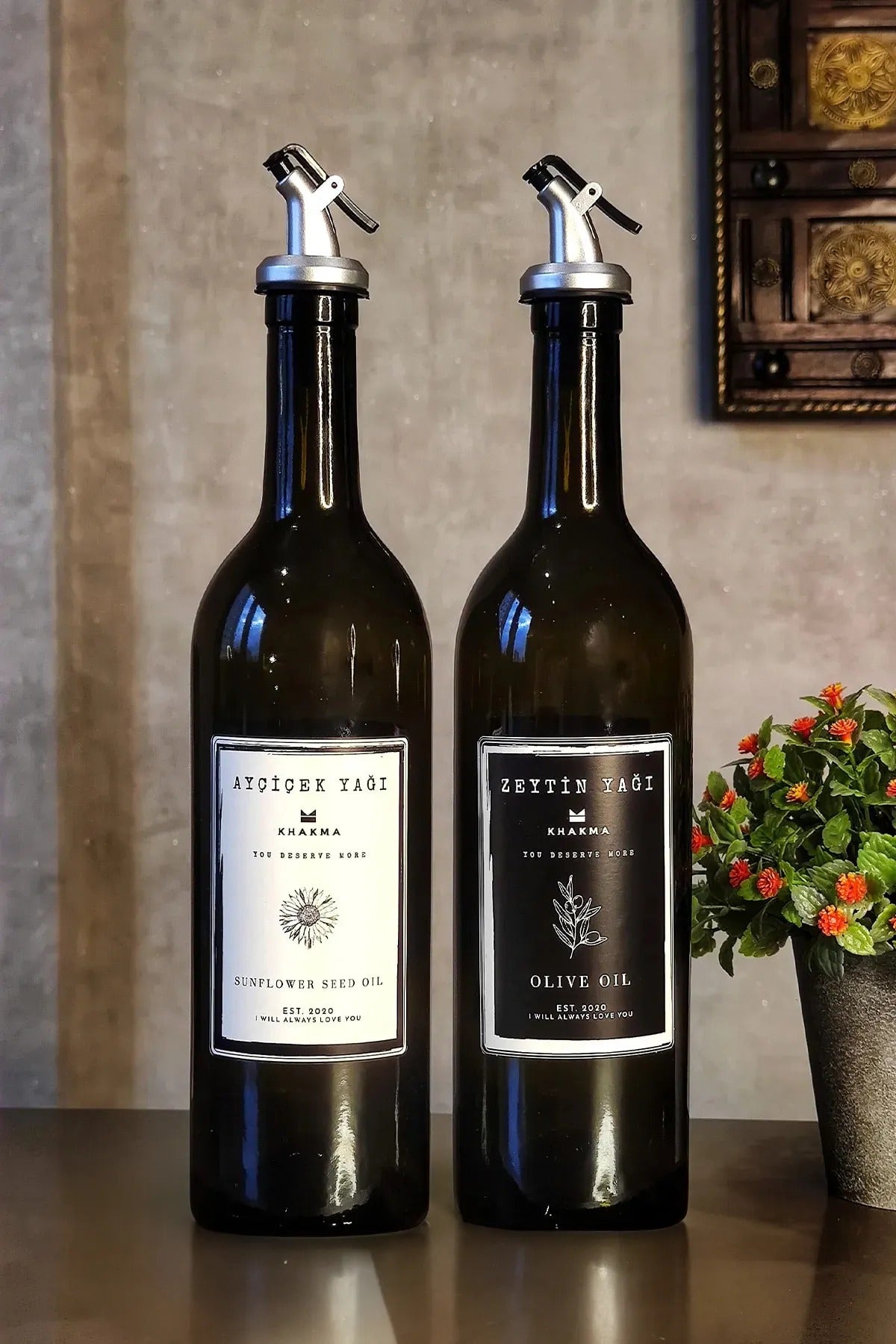 Amber 2'li 750 ml Zeytinyağı Sıvıyağ Şişesi Yağdanlık 750 Sb Za
