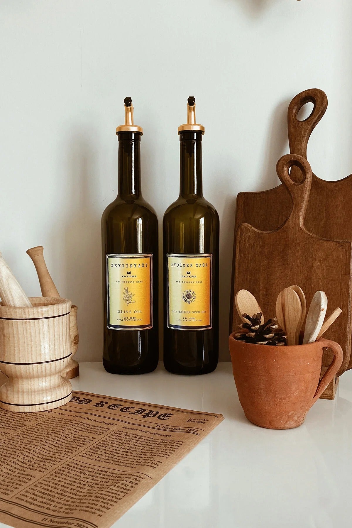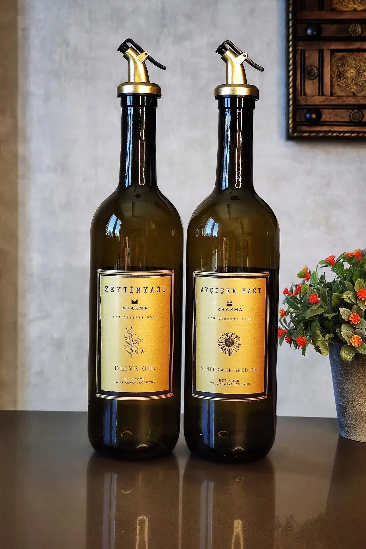 Amber Gold 2'li 750 Ml Zeytinyağı Sıvıyağ Şişesi Yağdanlık Yağlık 750gold