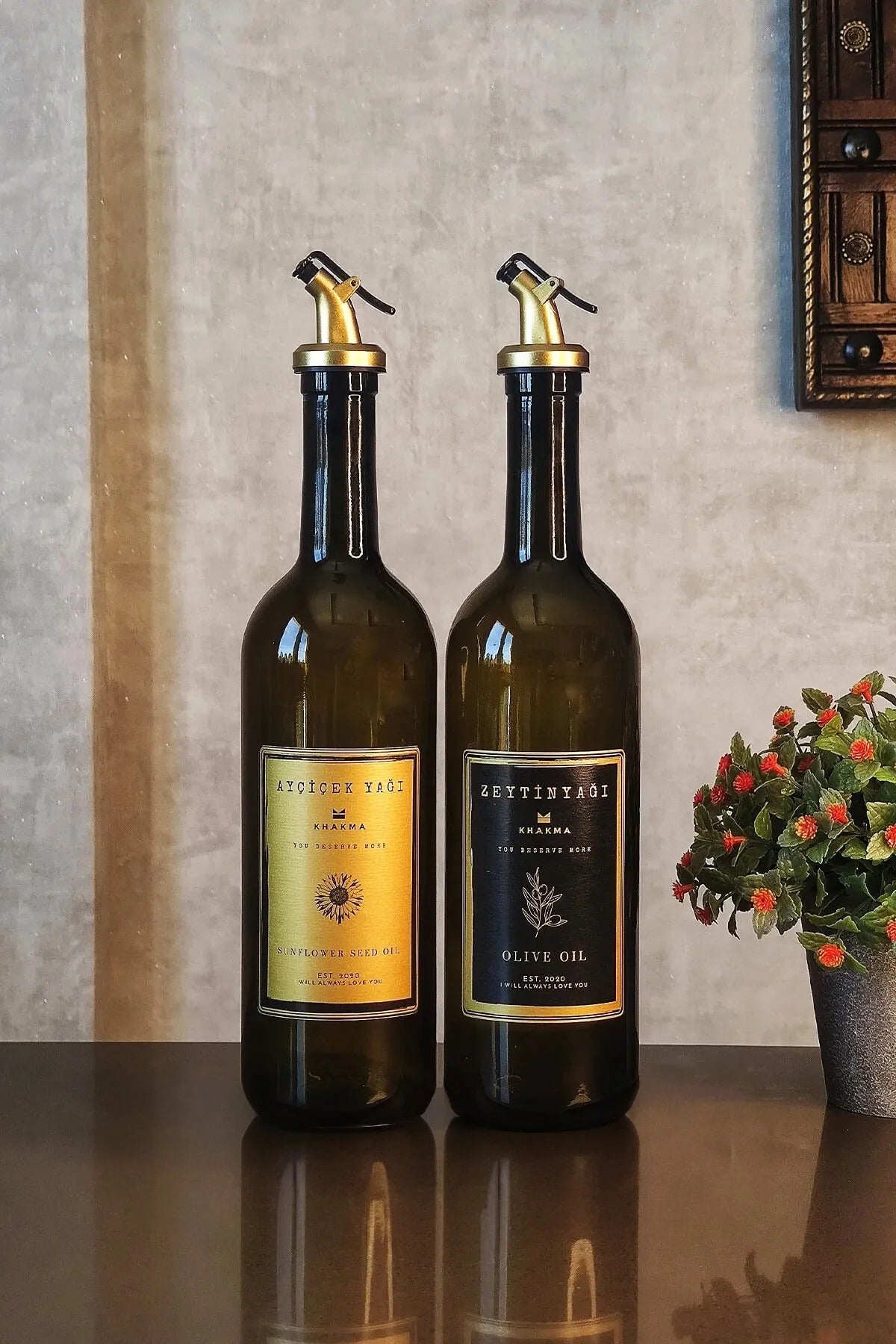 Amber Gold 2'li 750 Ml Zeytinyağı Sıvıyağ Şişesi Yağdanlık Yağlık 750rg