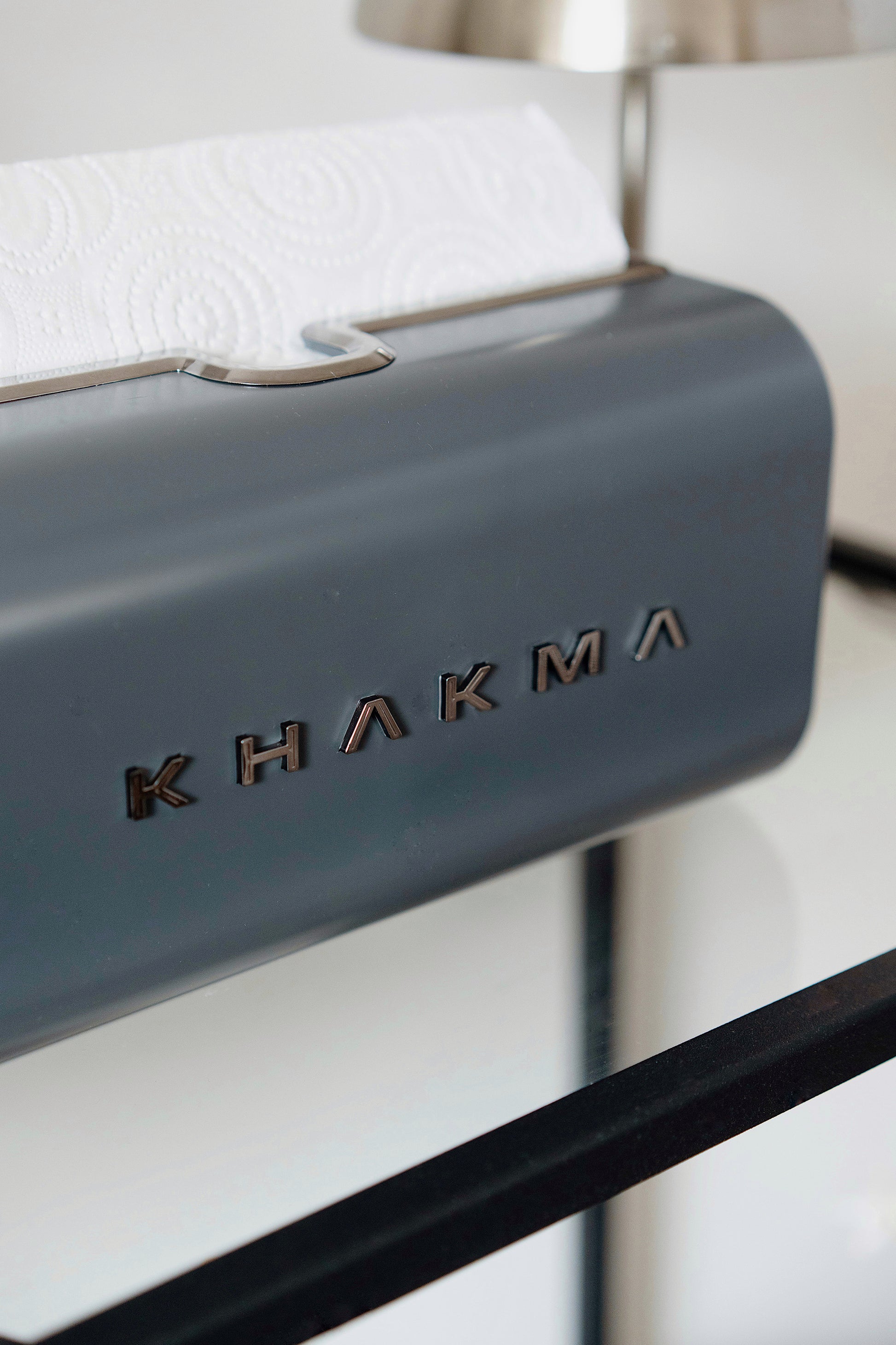 Dekoratif görünüm: Minimal gövde, parlak/yarı mat yüzey ve önde yer alan KHAKMA logosu ile modern bir dokunuş sağlar.
