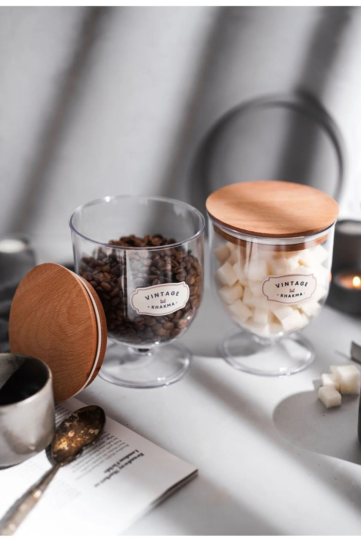 DEKORATİF 2 ADET VAKUM-AHŞAP KAPAKLI MİKA 0,8lt MISIR GEVREĞİ-YULAF-KURABİYE-KURUYEMİŞ SAKLAMA KABI