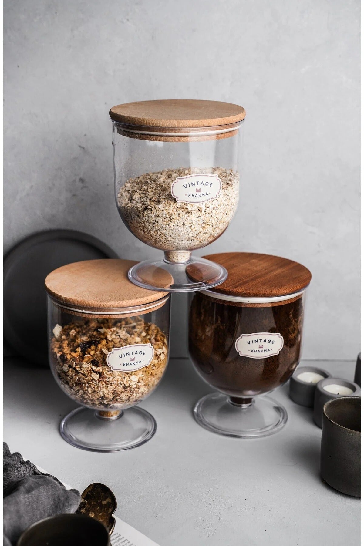 KHAKMA HOME DEKORATİF VAKUM-AHŞAP KAPAKLI MİKA 1,5lt MISIR GEVREĞİ-YULAF-KURABİYE-KURUYEMİŞ SAKLAMA KABI 3LÜ ; MISIR GEVREĞİ VE YULAFINIZI MANDALLI POŞETLERİNDEN ÇIKARMA ZAMANI GELDİ. ; KAHVE, ÇİKOLATA, ÇAY, ŞEKER, UN, İRMİK VB GIDALAR İÇİN KULLANILABİLİR. ; DOĞAL KAYIN AĞACINDAN YAPILMIŞ VAKUM KAPAK SAYESİNDE İÇERİSİNDEKİ BESİNLERİN HAVA ALMASINI ÖNLER. ; BPA FREE GIDAYA TEMASI UYGUN BİRİNCİ SINIF MALZEMEDEN ÜRETİLMİŞTİR, CAM DEĞİLDİR. ; AYNI ZAMANDA DETERJAN VE BULAŞIK MAKİNASI TABLETLERİ İÇİN SAKLAMA KABI OLARAK TA KULLANILIR. ; ALIŞKANLIKLARINIZA ERGONOMİ KAZANDIRIRKEN MUTFAĞINIZA ŞIKLIK KATAR. ; ÜRÜN ÖLÇÜLERİ: YÜKSEKLİK :18 CM ÇAP:13.5 CM ; 3 ADET GÖNDERİLECEKTİR. ;