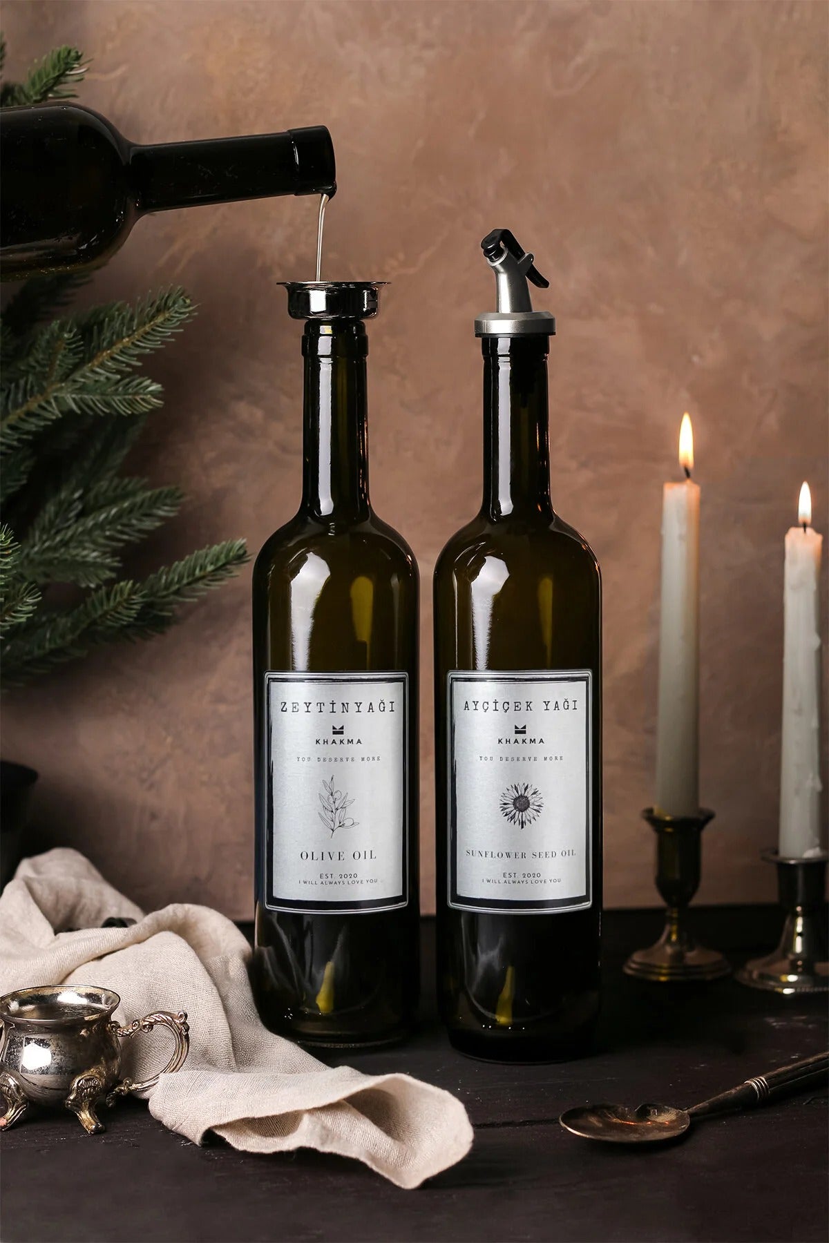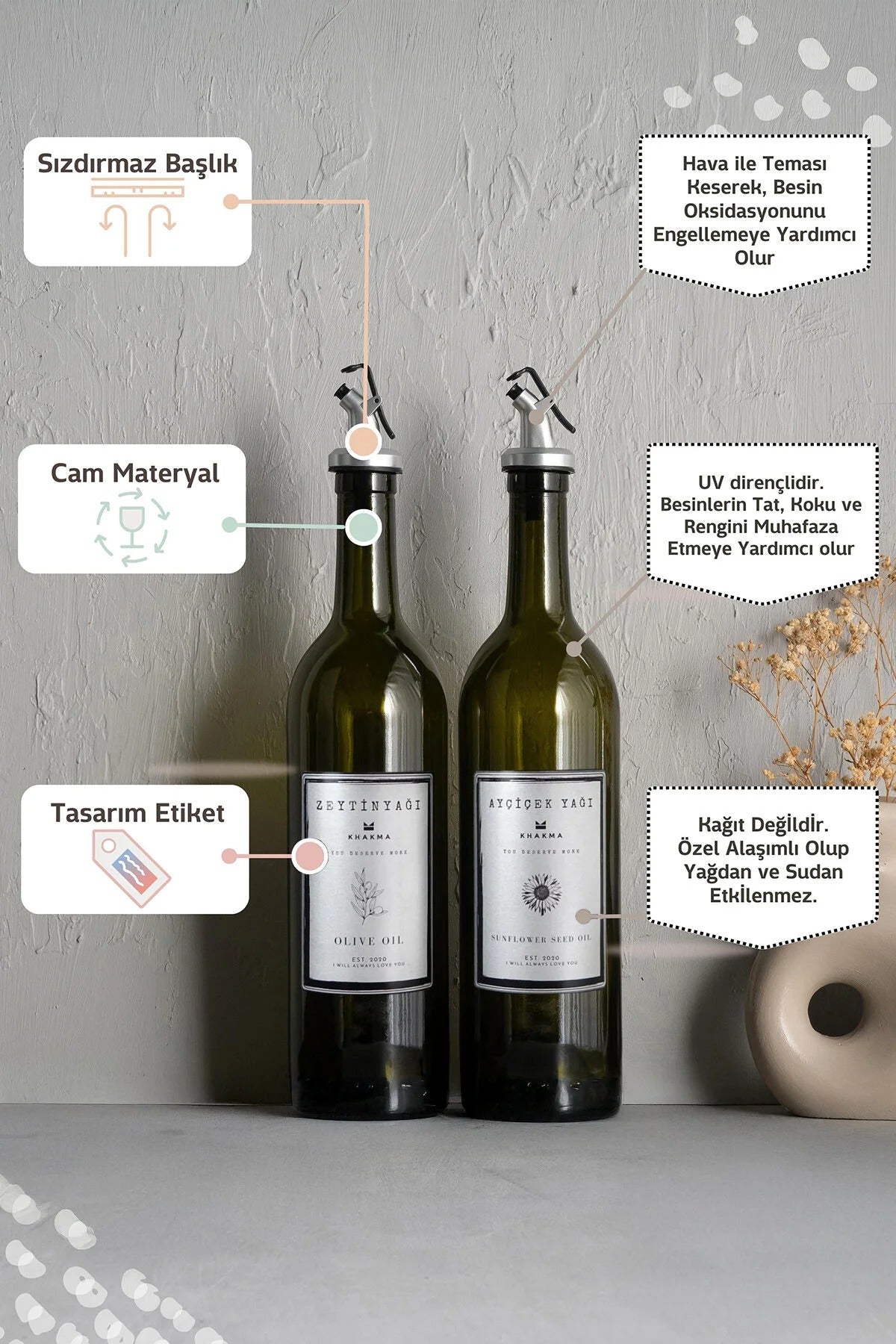 Gümüş Tasarım Amber 2'li 750 Ml Zeytinyağı Sıvıyağ Şişesi Yağdanlık Yağlık Stantsız