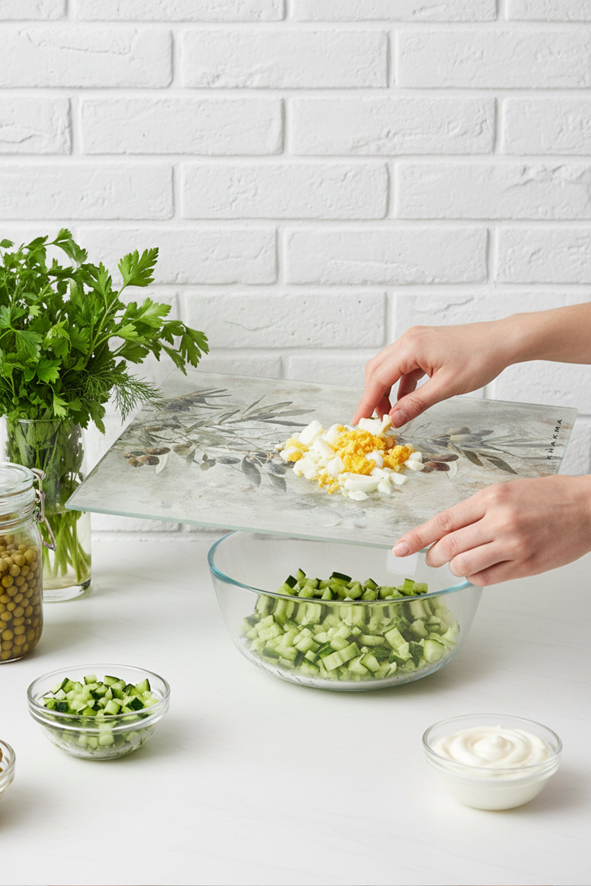 🫒 Khakma Home OliveRusticCam Kesme Tahtası – 25x35 cm | Zeytin Dalı Desenli | Rustik Dokulu Temperli Cam