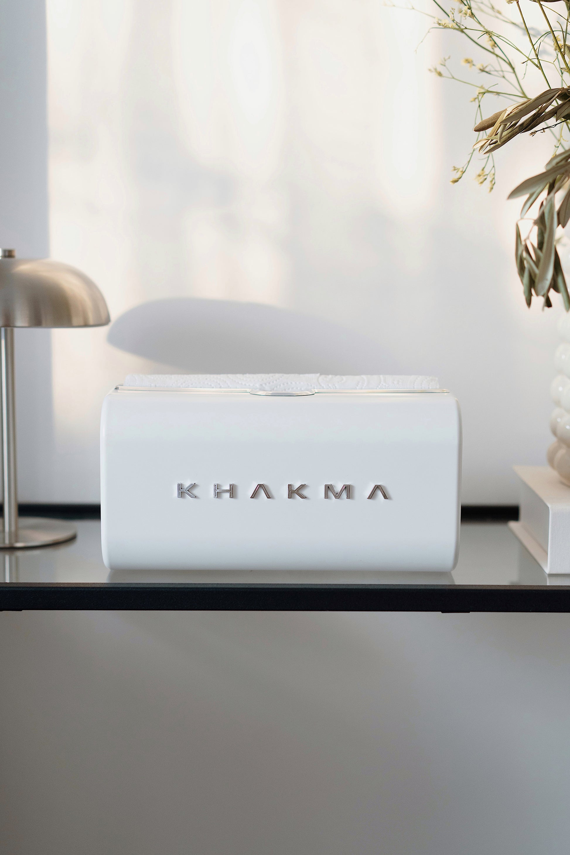 Dekoratif görünüm: Minimal gövde, parlak/yarı mat yüzey ve önde yer alan KHAKMA logosu ile modern bir dokunuş sağlar.
